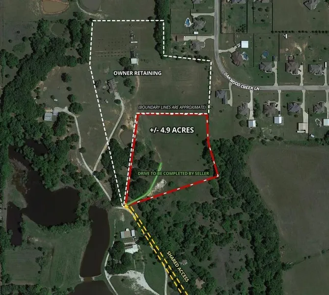 Very nice 4.9(+)(-) acres with trees and pasture surrounded by beautiful homes and nestled just off Mineral Wells Hwy, Owner is selling off front portion of land to current property (approx. 4.9 acres) from whole (14.97 acres) keeping 10 acres with the house. (final acreage will depend on the survey and the final driveway layout). Owner will pay for the survey and driveway to the divided land (not yet completed). See remarks and directions to access the property. This is a very hard to find tract this close to town with good restrictions, Barndos allowed. No Mobiles, No commercial.