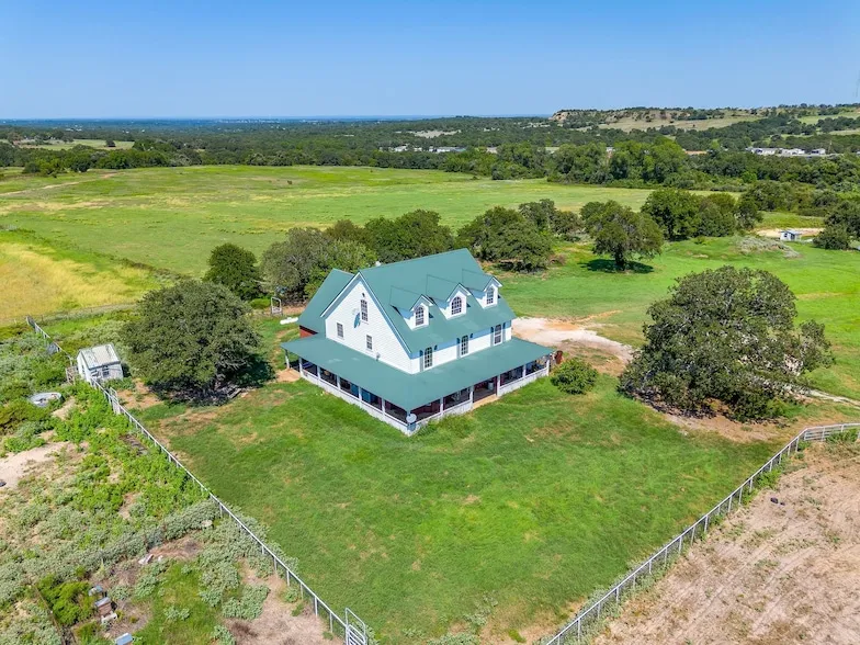 SO many possibilities with this one. ~ 3,000 square foot farmohouse currently being used as a residence, but it's 17.52 acres with over 1,250 feet of highway frontage. Ag exemption in place for about 15 acres. Very picturesque rolling acreage with a pond and beautiful trees. Cross fencing and gates for livestock. This can be almost anything from a small horse or cattle property, to a commercial use property. Two water wells, but it also has water from Walnut Creek SUD. Two septic systems. There's a large metal building that can be a barn or workshop. Mobile home on the property is uninhabitable.