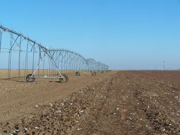 There are three operational wells and one well with a pump stuck in the hole. All wells are tied together. The tenant reports that each sprinkler is nozzled at 510 gpm, with only one system running at a time. There is a booster pump at each pivot.
