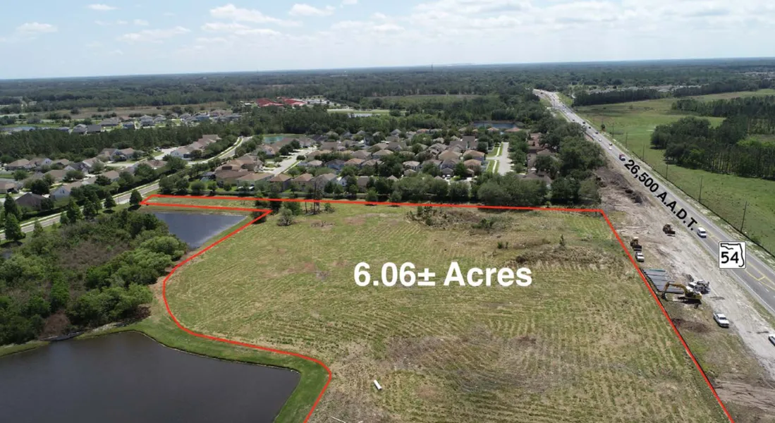PROPERTY DESCRIPTION 6.06 Acres located on the north side of SR 54 between I-75 & US 301 in Wesley Chapel, FL. It is an outparcel to the Avalon Park West development that includes entitlement for over 4,400 residential units, over 500,000 SF of commercial space and over 100,000 SF of office space. Property has access off of SR 54 & a secondary access point on the back part of the parcel off of Riverside Crossings Blvd. Excellent opportunity to join the growing area of Wesley Chapel, FL.