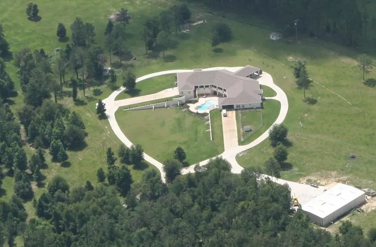 Corporate Retreat??? Spectacular property that would make a great retreat or family compound. Views of rolling hills plus lake frontage. Total of 11 bedrooms!! 4 kitchens!! Main house has 2 kitchens, 4 bedrooms, 3 full and 1 half bath. Take the elevator down to the first floor entertainer's dream...a media room, exercise room, stage for the kids, a full kitchen plus extra room for a pool table or dance floor. Two adjoining homes, one on each side of main house, flow seamlessly and each has 4 bedrooms and 2.5 baths with approximately 2,650 square feet each. Each home has its own seperate covered parking and all living areas open to the fabulous free form pool area featuring remote controlled spillover spa, waterfall and fountains. A 5,000 square foot insulated barn/workshop has a 30 x 16 airconditioned room and a full bath. The property is completely fenced except for the lakefront area. There is a private dock for fishing in the lake. This private retreat is only minutes to I-75 and offers great access to Tampa.