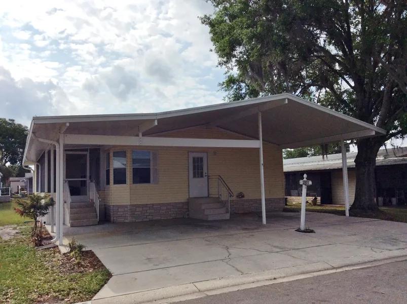2003 BUILD IN TIMBER LAKE ESTATES: 3 bedroom, 2 bath with eat in Island kitchen/ breakfast bar and laundry area located conveniently off one end. Newer carpet, master bedroom has walk in closet, master bath has dual sinks and walk in shower. Raised side screen porch and utility storage shed. Desirable 2 car carport gives plenty of room for 2 cars! Fabulous community with 2 pools, 2 clubhouses and activities. No age restrictions in this gated community and 2 pets allowed with some restrictions. First come first serve storage lot to house your larger toys for a small monthly fee. Easy Tampa commute and close to grocery, pharmacy, eateries and Wiregrass Town Center. You can buy for less than you can rent! Call today for your private viewing of this property!