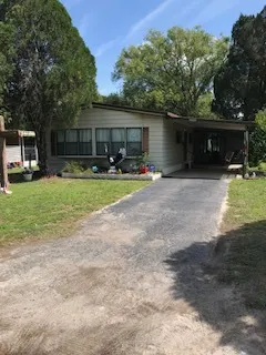 Great location near the hospital in Zephyrhills. Double wide on just under 1/4 acre. No deed restrictions or fees. Water is paid for standard yearly or monthly fee. Small dinette area to side of kitchen and dining room on other side with nice built in china cabinet and storage area. Larger living room with side covered entrance. Rear master bedroom with walk in closet and bath with shower. Hall bath, second bedroom and inside utility with utility sink complete the interior. Side screen porch attached to carport and a small utility shed are on the other side of home. Rear backyard has a larger utility building and is shaded. Come and see this one before it is gone.