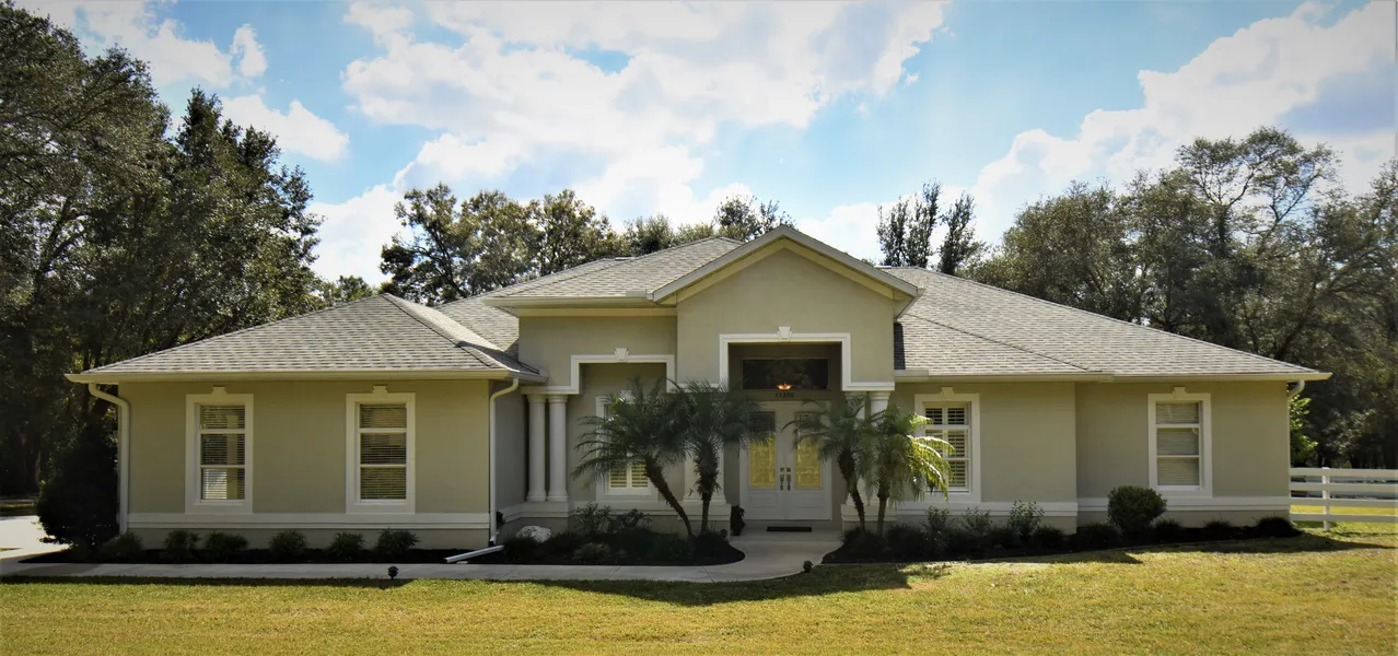 EXQUISITE in every way this 3.84 acre property has it ALL! Four paddocks w/ a 36x20 Barn with 2 stalls & 19x12 tack room. 3 Bedroom, 3 Bath, 3 car garage home w/ 2748 sq ft of perfection: 10-12' ceilings w/ crown molding throughout...upgrades everywhere you look! The foyer's 12' ceiling, columns & arched doorways greet you at the front door. To the left is the formal living room & to the right is the office w/ French doors. The family room has an 11' tray ceiling w/ French doors that lead to the lanai. Chef's kitchen featuring: granite counters, cherry wood cabinets w/crown molding & pendant lights over the breakfast bar. The open dining area has ample space for a lg table PLUS a built in desk. The master retreat has an 11' tray ceiling w/crown molding, 2 walk-in closets w/ custom shelving, two 7' vanities w/ new vessel sinks, 6'x6' walk-in shower & an over-sized linen closet. The 2nd master suite boasts a bedroom w/ add'l 9 x 7 sitting area, huge closet, private bath w/ walk-in shower & access to the lanai. The 3rd Bedroom is next to the Hall Bath. The 3 car garage has a laundry tub, attic access, a generator that conveys & plywood hurricane panels labeled and ready to go. The property also boasts a 21 x 12 shed, an asphalt road that leads to the barn & a fire pit...the sellers truly thought of everything plus there's no HOA! Pictures are worth 1000 words but this home is even BETTER IN PERSON!