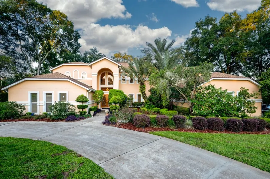 GRANDVIEW ESTATE! This stunning 5732 sq ft home boasts 5 Bedrooms, 5 Baths on 2 sprawling acres! Truly gorgeous with mature landscaping, circular drive, caged pool & 950 sq ft Lanai that is air conditioned...this is THE HOME to see! The marble tiled floors of the foyer, living & dining rooms greet you as you enter & you also notice the 20' ceilings & crystal chandeliers. The family room offers crown molding, fireplace, wood flooring & flows into the gourmet kitchen. The kitchen is a cook's DREAM: custom maple cabinets w/ crown molding, granite, tile back splash & expansive island w/ breakfast bar. The master suite is a retreat: 2 walk-in closets, jacuzzi tub, large tiled shower, dual sinks, make-up vanity, built in cabinets & skylight! There are 2 other bedrooms on the 2nd floor: both are master suites and 2 more bedrooms on the first floor; one is a master suite & the other is adjacent to the hall bath. All have walk-in closets, built in features and lovely views! The first floor bedrooms have lanai access as well! The study/office has built in cabinets, desks & a closet...this could be a 6th bedroom! The lanai has tile floor, a full kitchen, 4 fans & is the PERFECT entertaining space. The view is picturesque: the pool, courtyard & fountain...relax & enjoy! There are garages on the North & South sides of the home, 5 garage bays, attic access & loads of storage! The seller has made numerous updates including a new roof in 2016, 3 new ACs in 2012, exterior paint in 2017 & new pool screen this year!