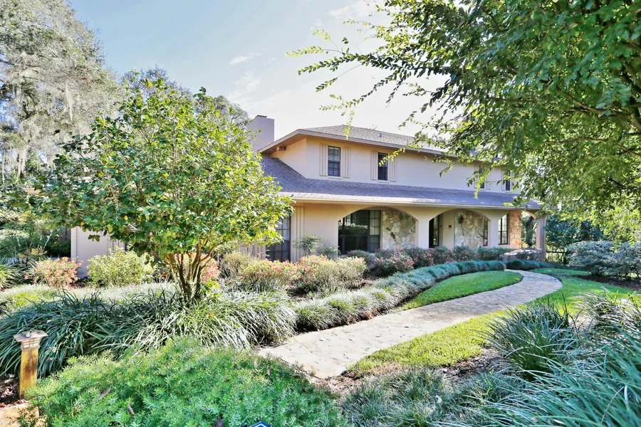 Elegant, Cozy, Amazing, Spectacular---so many adjectives and not enough words to describe. You must visit this home to appreciate how special this home is and the attention to detail in design. This one owner home was designed by this owner with attention to detail, symmetry and balance. You will first appreciate the privacy as you enter down the paved driveway to the gated entry. This large two story home is nestled among the trees and natural landscape offering complete privacy. Formal foyer welcomes you into this home of block construction (2nd story is also block). To the right you will find a bright formal area with huge windows bringing in the light and giving a great view of private wooded areas. To the left of the foyer is the less formal family room with informal dining/game area, gas fireplace, wet bar and french doors opening to the pool. Bringing together the formal and famil...