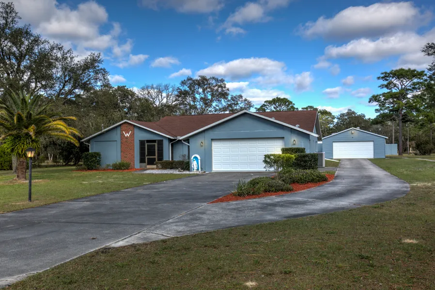 You will LOVE this Open Spacious Pool Home in the Country on 1.64 Beautiful Acres! This fabulous home has had a New Pool Pump in 2019, New River Rock applied to Enclosed Lanai also in 2019, which is a whopping 19 ft long, with a pass through window and leads out to a Screened Enclosed 15 x 27 ft Pool. The Pool had a Newer Finish on it and features a Dolphin on the bottom. There is a large Screened in Entertainment Area Poolside. Inside the home, there is a Double Door Foyer Entrance and opens to a Spacious Great Room, Cathedral Ceilings & Sliding Doors that fold into the wall facing the Acreage and the Pool! There is a Formal Dining Room as well as an Eat In Breakfast Room with Sliding Doors to the Lanai & Pool. The Kitchen is an Open Kitchen lay out that has nice bright lighting, access the Lanai through the Pass Thru to the Pool area. There is a Large Laundry Room with Washer and Dryer. There are 3 Large Bedrooms offering a Split Bedroom Plan and the Master has an En Suite Master Bathroom with Pool Door Access. The Roof is in Excellent Condition. There is an Attached 2 Car Garage and an RV or Boat under the Carport area in the back. The Land is SOMETHING ELSE! A VAST and OPEN 1.64 Acres of lovely grounds with the perfect amount of Trees. The men are going to LOVE THE MAN CAVE!! The Detached EXTRA 2 Car Garage 30 x 24! It opens from both sides! Behind it is a HUGE very tall Metal RV Carport! There are storage units too. Perfect for Folks with Boats, RV or other Toys. Own the Dream, call today.