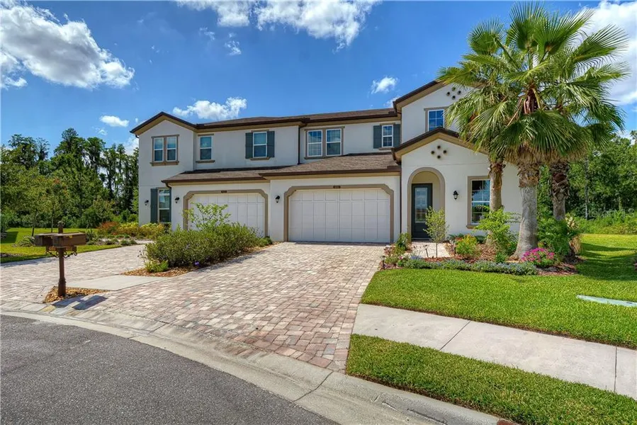Luxurious living with a European flair... Don't miss this beautiful French Provincial MAINTENANCE FREE VILLA in the gated Santeri village of Estancia. A rare find at an EXCEPTIONAL PRICE in the WIREGRASS RANCH SCHOOL DISTRICT. Nestled on a peaceful and picturesque CONSERVATION LOT on .36 ACRES at the end of the CUL-DE-SAC, with over $93,000 IN UPGRADES, this amazing Caldwell model built by STANDARD PACIFIC offers PRIVACY FOR EVERYONE. Greeted by a grand entry, a quaint reading nook and dramatic main hall rotunda, you will enjoy an open, split-bedroom floor plan, separate dining room, & upstairs bonus area, upgraded tile throughout main downstairs living areas, high ceilings, decorative niches, designer touches, and more. Delight in the SPACIOUS GOURMET KITCHEN boasting granite countertops, staggered 42" espresso cabinets, huge walk-in pantry, large island/breakfast bar, and sparkling stainless steel appliances including gas stove, built-in microwave, double ovens, and open to the family room with 16 ft. tray ceiling - a perfect space for entertaining or just spending family time together. Be the envy of the neighborhood with ONE OF THE LARGEST LOTS in the community with a "GRANDFATHERED" FENCED-IN AREA and HUGE SIDE YARD that affords plenty of room to roam. Unwind in your master suite with sitting area, massive walk-in closet, and elegant bathroom featuring dual vanity, quartz countertops, undermount sinks, and walk-in shower. Upstairs you'll find a 3rd bedroom & bathroom, with another huge walk-in closet (2ND MASTER), plus a marvelous MULTI-PURPOSE BONUS AREA making a great media/game room, guest suite, or teenager hangout. Feel reassured with plenty of storage throughout, and energy efficient features that put money back in your pocket. A great neighborhood with fabulous community amenities, A-RATED SCHOOLS, located across from Wiregrass Mall, Florida Hospital & Wellness Center, & minutes from The Grove, Tampa Premium Outlets, restaurants, grocery stores, w/easy access to major highways & all that the growing area of WESLEY CHAPEL has to offer. Maintenance fees include Lawn, Grounds, & Exterior Maintenance, Gated Village and Private Road, Additional Community Pool and Dog Park, ROOF REPLACEMENT as well as EXTERIOR PAINTING every 7 years. Take a VIRTUAL WALKING TOUR through this home. Simply click on the 3-D Panoramic Tour above. SEE IT TODAY! (*CDD fee is included in the Tax Amount*)