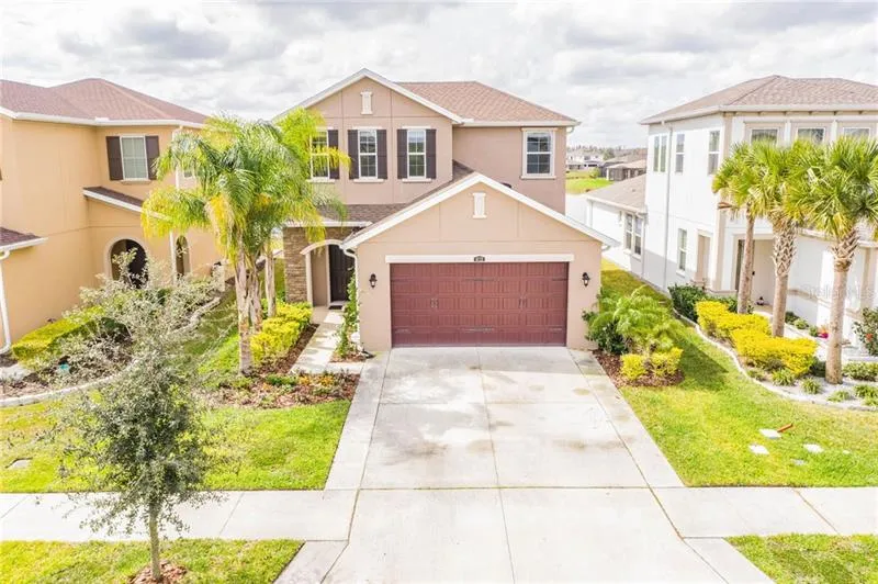 Why wait for a house to be built, if you can own this modernly designed 2-year old WCI home?! This two-story plan feels open, bright and inviting as soon as you walk in. The large kitchen opens up into the Dining room and Great room. For your convenience, there is a master suite, an office, and a powder room downstairs. The master bathroom features a walk in shower, double vanities, and a massive walk in closet. The kitchen features Weston Latte wood cabinets, a large center island, walk-in pantry, and top scale Whirlpool stainless steel appliances. The kitchen is any chef's dream! It was tastefully built with crown molding, back splash, gas range, and quartz countertops. Sliding doors in the family room lead to private outdoors, that has extended screened lanai with stunning views of water. Under stairs space will allow you to keep your home neat and tidy and store your seasonal decorations. Upstairs you will find an expansive Loft/Bonus area, the other 2 bedrooms and a full bathroom. There are too many upgrades to list. Quartz countertops are in all bathrooms, Wrought Iron baskets and balusters with Oak stain grade railing and handrail, Led Recessed light fixtures installed in Great and Bonus rooms. The home comes with an electric Whirlpool dryer and front load washer. The community has sidewalks and is beautifully maintained. Good schools and a close proximity to all shopping and restaurants. A stone's throw from I-75, downtown Tampa, MacDill Air Force Base, beaches and more! Do you currently feel the strain of being cramped in a home that's just too small??? This is the perfect solution! Come and see it for yourself!