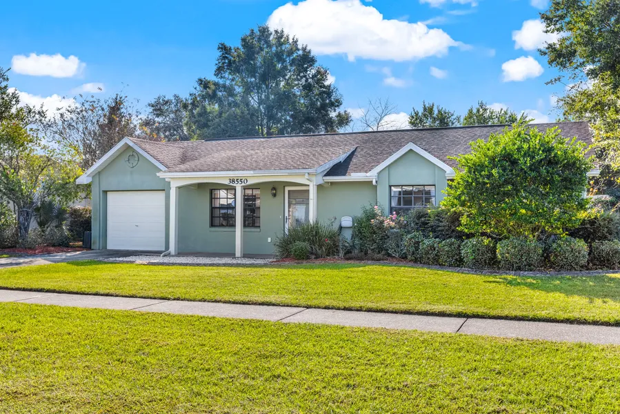 ALPHA VILLAGE! Neat and tidy and with NO HOA fees AND Solar this home is a GEM!! As you drive up you see the lovely curb appeal of this home. It's 2 bedrooms, 2 baths and 1298 square feet of living space PLUS an oversized garage, screened porch AND shed. The ceramic tiled foyer greets you as you walk into the huge living room which flows into the dining and kitchen. These three rooms all have vaulted ceilings. The kitchen offers a stainless refrigerator, range & microwave. The microwave cabinet also conveys with the home and offers additional storage & counter space and a built in cutting board. The bright and sunny family room is at the rear of the home and there's a slider that leads to the screened porch. The master bedroom offers a large walk in closet, shower that has been updated, large vanity with a make up area and a medicine cabinet. The second bedroom is also large with room enough for all your furniture plus a desk area if you wish. It has a huge walk in closet as well! The hall bath has a tub/shower combo and a linen closet. The screened porch at the rear of the home opens to an open patio which is the perfect spot to watch the butterflies among the plants! Do you have a green thumb? The seller does and is leaving you all set up with gardening beds with potatoes, numerous pineapple plants, tomato vines, and fruit trees! Pick bananas, mulberries, figs, avocados and grapefruit right from your own backyard! The pineapple plants are mature and are already producing large fruit. Thousands of mulberries can be harvested each season. Also in the backyard is a shed with tons of storage plus room for your lawn mower and tools. The garage is oversized: 23x11 and offers pull down attic stairs, laundry area with lots of shelves and of course room for your car! Want stable electric bills? The home is outfitted with a Vivint Solar System and the monthly obligation is LOW ... the seller pays approximately $90 per MONTH for electricity. All the info and payment information is attached to the listing for your review. Alpha Village does not have HOA fees and is conveniently located to all that Zephyrhills has to offer. Medical facilities, restaurants and lots of shopping are nearby.