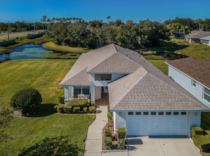 Great Hudson Location - Beacon Point. Spacious, 3 Bedroom, 2 Bath, home is located on a Cul de sac with tranquil CONSERVATION & POND VIEWS. Very private with only one side neighbor. This home has been well maintained by the original owner and is being sold FULLY FURNISHED for Seller's convenience. NEW ROOF 2021, A/C 2015, WATER HEATER 2011. Impressive high architectural covered entrance and front porch. Upon entering the home as you step into the grand foyer, you'll find the home is light and bright and features 11' high textured ceilings and an open floor plan with an oversized living room and separate dining room area. No carpeting- large ceramic tile flooring throughout with beautiful laminate flooring in the bedrooms. The large functional kitchen has raised panel cabinetry, newer Stainless Steel Appliances, recessed lighting, a breakfast nook, 2 large closet pantries, an abundance of cabinets and a pass through counter to the dining room. Located at the rear corner of the home is the spacious master bedroom which features a coffered ceiling, 2 walk-in closets and an ensuite bathroom with a bathtub/shower combo, vanity with 2 sinks and a linen closet. The secondary bedrooms are generous in size and closet space. The hall bath features a large walk-in shower with glass shower enclosure and a linen closet. The interior laundry room which includes a washer and dryer with overhead cabinets, leads to the oversized 2 car garage which contains a utility sink and a water softener. This home also features 380 sq.ft of "Florida all weather living space" that overlooks the tranquil conservation, pond and sunset skies. IT IS NOT INCLUDED in the home's living square footage and is accessible through the dining room sliding glass doors. The enclosed porch space has operable windows and is not heated or cooled but you have options of a portable a/c or a mini split system if you so desire to add. ENJOY THE LOW MAINTENANCE LIFESTYLE - the HOA is $260 month and is a great value which includes: Grounds maintenance (lawn), Cable TV w/2 boxes, Internet, Trash, Sprinkler System & water for the sprinklers, Community Pool & Jacuzzi and use of Main Clubhouse and all the amenities just blocks away. Great location, close to the coast & beaches, easy access to US 19, 1/4 mile from Bayonet Point Hospital, tremendous shopping nearby. FLOOD INSURANCE IS NOT REQUIRED, IT IS OPTIONAL. Remediated Settlement in 2010. Engineering Reports Available, fully insurable. Measurements are approximate. Buyer to verify all information. Must own one year before leasing. CHECK OUT THE VIRTUAL TOUR!