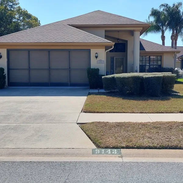 Rarely Available Single Family Home with ALL ROOF, EXTERIOR MAINTENANCE AND LAWN MAINTENANCE INCLUDED!! ALL AGES WELCOMED!! Come Live at The Preserve at Fairway Oaks. The moment you enter this lovely home, you will notice the gorgeous Engineered Hard Wood Floors running throughout. Soaring Cathedral Ceilings, a Big Screened Lanai out back, a Big Eat in Kitchen with lots of Wood Cabinets and Stainless Steel Appliances, and Sliding Door to Lanai. There is an Inside Laundry, Split Bedrooms, The Owner's Suite is Absolutely Gorgeous. The Cathedral Ceilings, the Huge Windows, and the most ENORMOUS Walk in Closet, I have ever seen in a home this size. Both Bathrooms are big enough for a Wheel Chair, Lovely and Remodeled. They both have Large Walk in Showers with Built in Bench Seating. Two very roomy Bedrooms with lovely Window Treatments. The Owner's Suite has Lovely Window Accents bringing in...