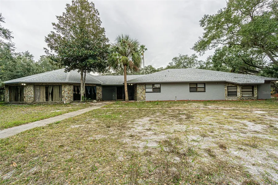 This beautifully appointed home is located on 2.65 private acres with a pond behind and front, in the heart of Port Richey. The house boasts an impressive 5,209 sq ft and is currently set up as a 3-bedroom, 2 and a half bath, and an in-law suite with 1 bedroom and 2 baths. The main family room and remodeled kitchen share a large space with vaulted ceilings and a back wall consisting of windows that provides an abundance of natural light. The master suite has an outstanding size of over 400 square feet and multiple walking closets. The master bath features an exquisite step-down tub for a relaxing bath experience. The home has plenty of storage space for all your items and more. The pool area has a gorgeous pool and deck area with a panoramic pond view. Enjoy the endless entertaining possibilities with friends and family for small or large gatherings. The attached 2-car garage, the detach...