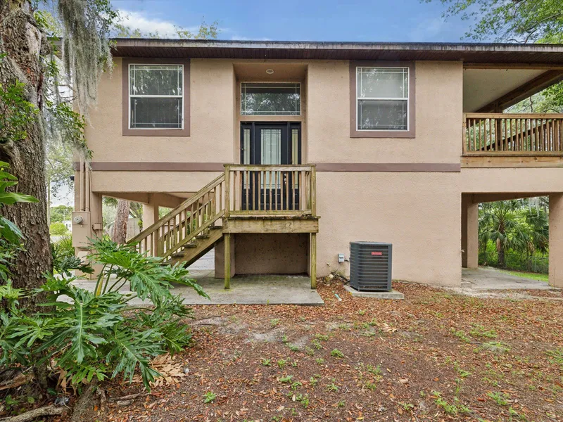 This charming stilt home features a BRAND NEW ROOF and has 3 bedrooms, 2 bathrooms, and parking with a carport for 6 cars underneath. Step inside to discover a kitchen enhanced with wood cabinets, corian countertops, a spacious pantry, and elegant oak wood floors. The vaulted ceilings add to the sense of openness and light throughout the home. Enjoy relaxing or entertaining on the oversized open porch, which offers a beautiful view of Circle Lake and the privacy of no rear neighbors. Additional storage space on the main floor ensures you have room for all your belongings. Located in a serene setting, this property offers both comfort and convenience. Don't miss out on the opportunity to make this unique home yours!