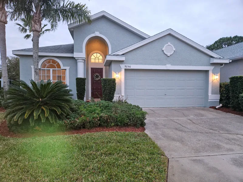 This is where style, comfort and easy living resides. This spacious open floor plan features expansive ceilings, roomy kitchen and an inside laundry. Beautiful laminate wood flooring is easy to care for. The spacious family room with coffered ceilings is open to the kitchen and has sliders to the lanai. The kitchen has lovely wood cabinets and a breakfast nook with a view of the backyard. The large master suite has sliders to the lanai and a huge walk in closet/dressing room. The en-suite bathroom has a double vanity, garden tub and walk in shower. The floor plan includes a formal living room and dining room with a unique chandelier. The spacious covered screened lanai is private and perfect for enjoying some fresh air. This one family owned home is freshly painted and sits in the highly desired Peachtree Community which provides landscaping and lawn care, exterior painting, community po...