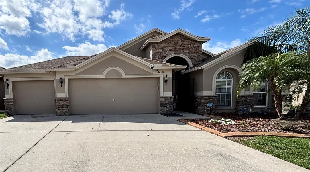 One word.. WOW! This beautiful 4 bedroom/2 bath home with a 3 car garage is located in Oak Creek in highly sought out Wesley Chapel. Upon entering, enjoy the bright and open view that extends all the way to the majestic views of the oversized screened lanai and tranquil water views. To your right of the foyer, you will enter into your gorgeous formal living room and dining room combination, with Built ins in the living room and custom cabinet doors, and an impressive electric fireplace. The incredible gourmet island kitchen has been recently upgraded (end of 2021) and is fully state of the art, and includes beautiful granite countertops with lighted cabinetry, pull out shelving, built in pantries, a wine fridge, new dishwasher (2024), a bench seat and top of the line appliances, etc. It's the perfect place to entertain and make unforgettable meals! From the island kitchen, enjoy spectacu...