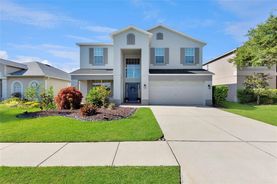 Under contract-accepting backup offers. MULTIPLE OFFERS RECEIVED! MOVE-IN READY | 5+ BEDROOMS | 3 BATHS | NO CDD | NO FLOOD INSURANCE | PRIME WESLEY CHAPEL LOCATION Welcome to Palm Cove, one of Wesley Chapel's most sought-after communities-completed, camera-secured, and family-friendly with low HOA fees and no CDD! Ideally located just minutes from I-75, Epperson Lagoon, Tampa Premium Outlets, Publix, Chick-fil-A, Starbucks, and more-this home offers unmatched value, space, and convenience. Community Perks: Enjoy resort-style amenities including a massive pool with turf, palm trees, splash pad, and cabanas. Stroll scenic walking trails, shoot hoops at the basketball courts, or bring your four-legged friend to the dog park. The entire family will love the 3 playgrounds, and there are open fields for soccer and recreation. Mature landscaping, sidewalk-lined streets, and well-spaced homes create a safe, inviting neighborhood vibe. Property Highlights: This grand two-story home impresses with a massive covered entry porch and large windows that flood the space with natural light. Inside, you're greeted by an 18.5-ft foyer and 9.5-ft ceilings throughout the first floor. The versatile layout includes 5+ oversized bedrooms, 3 full bathrooms, and multiple living/flex spaces-perfect for multigenerational living or remote work setups. Interior Features: Chef's kitchen with granite counters, wood cabinetry with pullouts, herringbone tile backsplash, and WiFi-enabled stainless steel appliances 2 Primary Suites (1 on each floor) Loads of storage space Formal living, dining, and office spaces with French doors Updated bathrooms featuring quartz countertops, new sinks, toilets, and fixtures WiFi-enabled washer/dryer, programmable thermostats, water softener with strong pressure Tons of large wall space-ideal for oversized art, TVs, or projectors Luxurious main primary suite with a sitting area, customizable walk-in closet, soaking tub, dual vanity, and separate shower Flexible Floor Plan: Main Level: 2 large bedrooms, full bath, open-concept living/dining, kitchen, and formal spaces Upper Level: Bonus loft, 3 bedrooms, and huge owner's suite Exterior Features: Covered patio-perfect for a future outdoor kitchen or pool Fully fenced yard with vinyl fencing, new pavers, quartzite stone pathways, and lush landscaping Oversized garage with built-in storage and second refrigerator Move-in ready with big-ticket updates already done: New Roof Replacement Windows (Most) Updated Flooring & Fixtures Don't miss this rare opportunity to own a turnkey home in a completed, amenity-rich community with no CDD and instant I-75 access. Schedule your showing today!