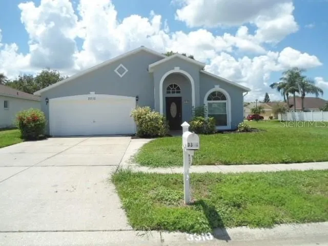 Move-in ready, three bedroom, two bath home located in the deed restricted community of Stagecoach Village. This home features an eat-in kitchen with granite countertops, stainless steel appliances, pantry and breakfast bar; a family room with plant shelves and a vaulted ceiling; spacious living room dining room combo; the primary bedroom suite has a huge walk-in closet, and the primary bath has dual sinks; there is a split bedroom plan with bedrooms 2 & 3 sharing a hall bath; an inside laundry room with shelving; a two-car garage with pull down attic stairs and a large screened-in lanai. The home has been freshly painted inside and out, and the roof and a/c are 7 years old. Amenities of the community include a community pool, club house, fitness center, and playground.