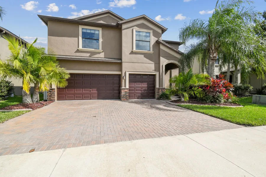 Enjoy nature and the views of local wildlife from your six-bedroom, four-bath family home as you take in sunrises across the pond within the gated community of Trinity Preserve. Built in 2014, this spacious home offers 3,938 total square feet and 3,231 heated square feet with an open floor plan designed for both entertaining and everyday comfort. The modern kitchen features a large island with generous bar seating, stainless steel appliances, and wood cabinetry, opening to a breakfast area overlooking the patio and fenced backyard or leading toward a more formal dining space ideal for gatherings and festivities. A bedroom on the first floor provides flexibility for guests or serves perfectly as a home office with tranquil water views. Upstairs, the primary suite offers a private lounge area, ensuite bath, and walk-in closet, all oriented toward the serene pond. A loft area provides additional living space and connects two bedrooms with water views and two more overlooking the community. Constructed with durable block construction, this home includes a large PVC-fenced backyard with ample room for a pool, two zoned air-conditioning units and heat-pump Water Heater for energy efficiency, a triple-car garage with a pavered driveway, RainBird sprinkler system, dedicated indoor laundry room, and a combination of tile, LVT, and carpet flooring throughout. Located in a No-Flood X-Zone, the home offers security and peace of mind for years to come. Trinity Preserve is a unique community that blends natural beauty with modern convenience. Residents enjoy coded gate access, well-maintained common areas, and reasonable HOA fees, creating a safe, family-friendly environment surrounded by peaceful landscapes. The community's location provides outstanding accessibility to major routes, with State Road 54 offering quick east, west travel across Pasco County and direct access to the Suncoast Parkway just five minutes away, leading to Tampa and Tampa International Airport. U. S. 19 is about 15 minutes west, providing routes south to Clearwater and Dunedin and some of the best beaches in the nation as well as north to New Port Richey. Everyday needs and leisure activities are just minutes from home. Nearby, HCA Florida Trinity Hospital, a full-service 278-bed hospital, and AdventHealth Medical Group Multispecialty at Trinity, with outpatient and specialty care, are both just minutes from the community. Shopping and dining are also close and convenient, with Trinity Village Center and The Shoppes at Trinity Lakes, anchored by Publix, restaurants, and fitness facilities are only minutes from your doorstep. Combining comfort, convenience, and natural tranquility, this beautiful Trinity Preserve residence offers the best of modern Florida living, where every day begins with a peaceful sunrise over the pond and ends surrounded by the serenity of nature.