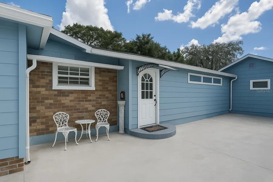 Fully Renovated 3-Bedroom Home with Oversized Heated & Cooled Garage. Welcome to this unique downtown gem—a beautifully renovated 3-bedroom, 2-bathroom home offering 1755 square feet of modern living space and a 750 sq. ft. climate-controlled metal garage. Perfectly situated in the heart of Downtown New Port Richey, this property blends timeless charm with contemporary comfort and unbeatable functionality. Property Highlights: Completely remodeled interior featuring new flooring throughout, Stunning kitchen with solid wood cabinetry and stainless steel appliances, Split-bedroom layout, formal dining room, and oversized living area, primary suite with sliding barn door, updated en-suite bath, solid-surface vanity, and custom tile shower, Indoor laundry room and abundant storage, Oversized driveway accommodates up to six vehicles, Covered nook ideal for motorcycles, bicycles, or golf cart storage. Versatile Heated & Cooled Garage: