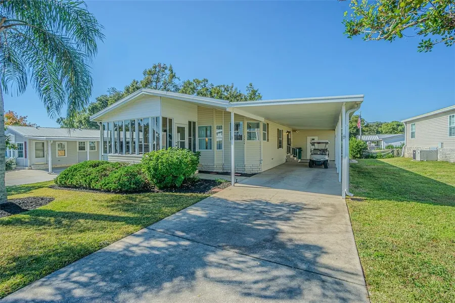 GATED Grand Horizons home on exterior lot... barely used, meticulously maintained and ready for YOU! Enter from your covered carport into a Vaulted FLORIDA ROOM on the front of the home, with slider windows and tropical views! Sliding doors into the Spacious Living room provide a bright and airy feel! Kitchen is at the front of the home with bay kitchen dining nook, loads of cabinets, all appliances stay and vinyl look laminate flooring. Formal Dining Area for entertaining is off the kitchen, OPEN to living room. Guest Bedroom is spacious and can double as a den or craft /sewing room with bed and large closet, adjacent to guest bath! Owners suite is at the rear of the home with wall to wall mirrored closet and full bath ensuite with additional linen closet and large shower. Inside laundry room with broom closet and cabinets above washer/dryer for additional storage. Large utility shed attached to carport with workbench, tools and extra storage. Furnishings Negotiable. OWN YOUR LAND in this 55+ community with resident owned clubhouse, heated pool/spa, shuffleboard, library, billiards, commercial kitchen, planned onsite activities and travel excursions! Located in Zephyrhills just north of Tampa in Sunny Florida. CALL TODAY to see why this IS the place to BE!