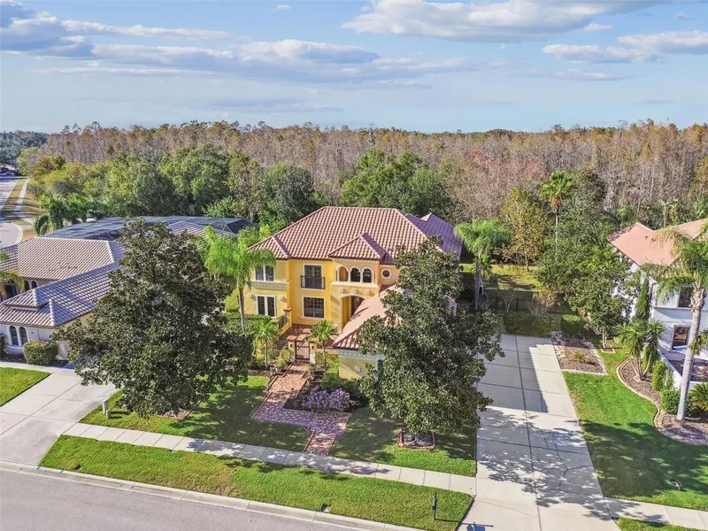 Mercedes Homes San Remo model with custom courtyard, 6 beds, 4 full baths, 3-car side entry garage, fenced, 1/2 acre conservation lot on a quiet cul-de-sac in walking distance to elementary school. Equipped with double ovens plus a convection microwave oven, the kitchen is ready for its next chef! Both full seating dinette that overlooks the pool plus a formal dining space for Sunday dinners and big holiday gatherings. The pulse of the home is the family room with 20-foot ceiling for an open airy space that overlooks the pool and conservation - cue the deer, turtles and bunnies that charm their way around the neighborhood. The primary retreat features French doors that open to the pool, very generously sized room to fit any furniture type (plus a treadmill, seating area or desk). Primary bath offers a stall shower and a soaking tub with triple mirrors and spacious double vanity plus seating nook and walk-in closet. Downstairs bedroom serves as office but has a full bath with stall shower and is perfect for designated in-law space. Enjoy 4 oversized bedrooms, an open loft and huge media/bonus room upstairs - affectionately known as the kids' condos! Possibilities are endless - study space, library, office, workout space, gaming room, theater room, play room. This home is perfect for generational living, too! Oakstead features a clubhouse with weekly and monthly social activities, a pool, kiddie pool, tennis courts and miles of sidewalks throughout lush Florida landscaping. Conveniently located at the southernmost point of Pasco county, get quick access to Hillsborough, Pinellas and Hernando counties. Regional outlet mall offers tons of shopping and dining. Houses of worship are plenty. Tampa International Airport less than 30 min away.