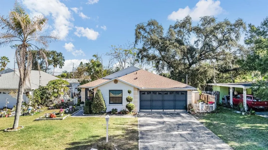 One or more photo(s) has been virtually staged. Welcome to this 3-bedroom, 2-bathroom single-family home nestled on a quiet street in the heart of Holiday, FL. Step inside to find vaulted ceilings, a large open-concept family room, and a dedicated dining space that flows into the kitchen. The kitchen features ample cabinet storage, a pantry closet, and a convenient breakfast bar overlooking the living area—ideal for entertaining. The primary bedroom is oversized with dual closets and an en-suite bathroom that includes a walk-in shower, garden tub, and plenty of counter space. Two additional bedrooms share a full bathroom on the opposite side of the home, providing a desirable split floor plan. Outside, the home boasts a fully fenced backyard, lush with mature trees for added privacy and shade. The covered entry adds charm and curb appeal. The home also includes a covered and screened rear patio, ideal for relaxing or expanding your entertaining space. While this property does need some updating, it offers a solid structure, no known major issues, and a layout that’s easy to modernize. The roof was replaced in 2021 and no HOA, this home is a great opportunity for investors, first-time buyers, or anyone looking to build equity with some TLC. Conveniently located near shopping, dining, parks, and local schools, this home is just a short drive to the Gulf of Mexico and area beaches. Don't miss your chance to make this house your next home or investment—schedule your private showing today!