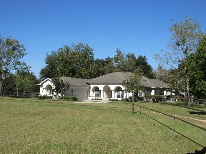 Dazzling contemporary equestrian home on 5.96 acres in a desirable area in Dade City. This 4 bedroom, 2 bath, 3 car garage home was built in 2001. The 4th bedroom is being used as an office. Entering the double beveled glass entry doors, you will notice the open floor plan with high ceilings, beautiful ceramic tile, and a stunning view out the patio glass. This home offers a Living room and Family room floor plan. The kitchen has granite counter tops, a center island, recessed lighting and under cabinet lighting. The master bedroom features tray ceilings with crown moldings and plenty of space for a grown up retreat. This split floor plan home also has a large inside utility room with laundry sink and plenty of storage cabinets. The home is equipped with a 22Kw standby whole house generator. The property boasts a 24x36 two stall barn and tack room with three turn out paddocks. ...