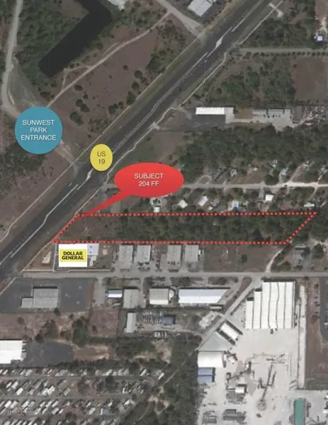 High and dry 4.5 commercial acres with great site prominence fronting heavily traveled Commercial Way (AKA US Hwy 19). 40,500 vehicles per day passing this site. Located directly across from the entrance into the SunWest Water Park and future SunWest Harbourtowne Resort development