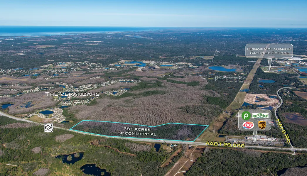 The property is located on the north side of State Road 52, just west of Hays Road. It's less than 5 minutes to the Suncoast Parkway, 30 minutes to Tampa International Airport, and 35+ minutes to downtown Tampa.