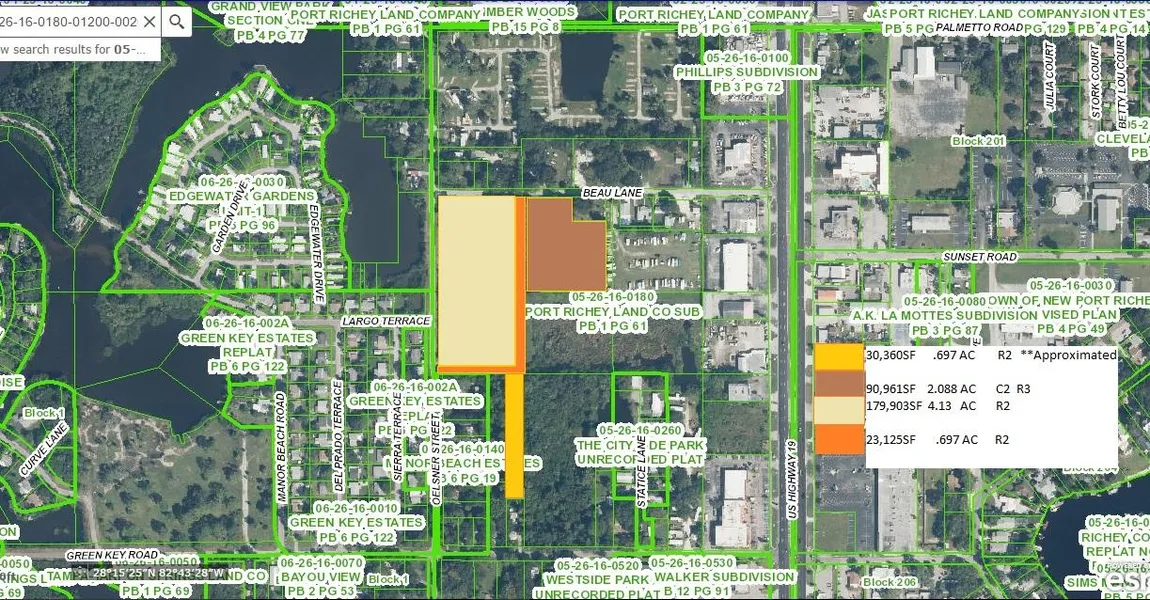 4 Parcels Adjacent. 7.4 AC MOL Multi Zoned for Residential and Commercial use. Can be sold separately, under certain conditions. Close to Highway 19 and the Gulf of Mexico. Ideal Location in high density area with easy access to I75 and the Veterans Expressway. Multifamily, Single Family and Commercial uses. Light wooded. Multiple access points possible.