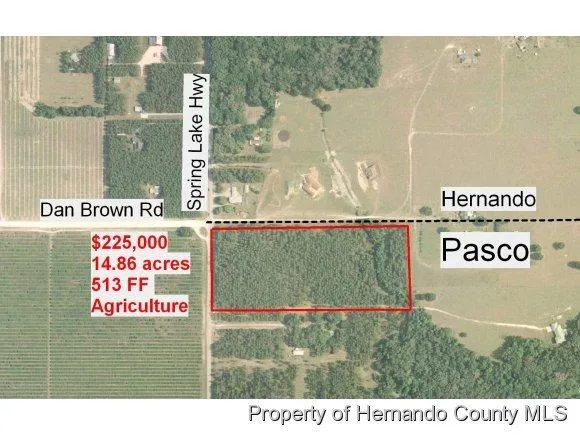 14.85 Acres fronting 513 ft along Spring Lake Hwy, 1.5 miles north of I-75 Interchange. High elevation, planted pines, creek, seller has site plan to subdivide land into two equal homesites. GREENBELTED, taxes ONLY $54.60/yr