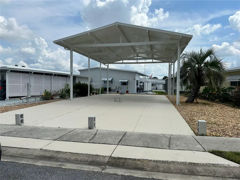 American Condominium Park is a 55+ gated community with heated pool, clubhouse, exercise room, sauna, hot tub, tennis/ pickle ball court, horse shoe pits, shuffle board, and many more amenities. A friendly active community with daily, weekly, and monthly activities including dances, dinners, and entertainment. Perfect for full time affordable living and cost effective for snow birds. As an RV subdivision this property has a full roof-over to accommodate your RV. RV Port deminisions 14'3" High at lowest point. 27 ft W x 35 ft D. Full Hookup w/60 amp outlet.
