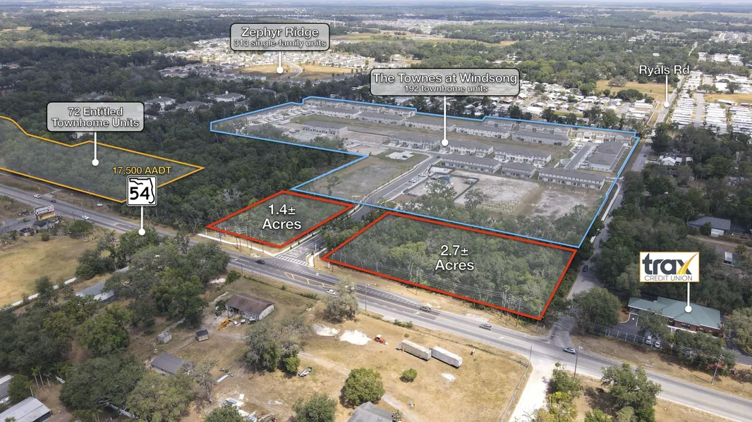 LOCATION DESCRIPTION - The property is located along State Road 54 in Pasco County, a key east-west corridor connecting the growing communities of Wesley Chapel, Land O Lakes, and Zephyrhills. The property sits at the entrance to Lennar's 192-unit newly constructed The Townes at Windsong. The site offers excellent visibility to approximately 17,500 vehicles per day and benefits from convenient access to nearby residential neighborhoods, schools, and commercial centers.