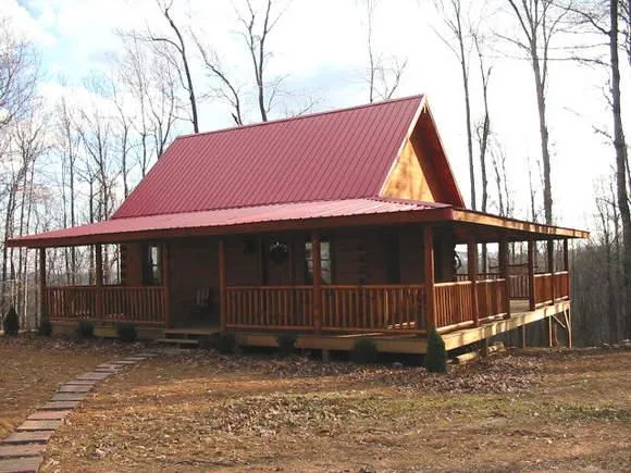 Included with the cabin: 2 refrigerators, washer, dryer, glass-top range, microwave, and... the HANDMADE LOG BED in the master bedroom. Sellers are also leaving the Amish storage building and a big porch swing.