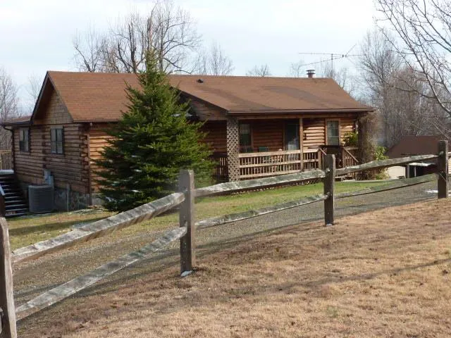 Log home with caboose. The unique features in this home are a must see. Home features an owner designed, basement to main floor, elevator. In addition to the heat pump the house features a stainless steel water stove that also serves the detached garage/workshop. Unique pantry contains hinged shelves that more than double the storage space. Caboose containing bedroom, living area and full bath could be utilized as guest quarters or rental. Property borders land owned by the city of Danville.