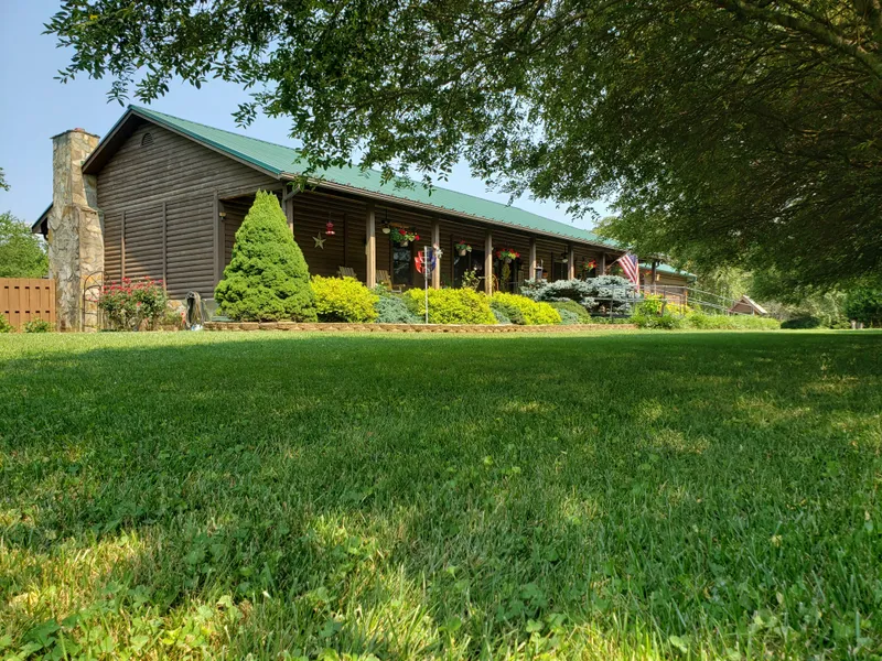 Close to the VA and NC boarder this Stunning log siding home with Metal roof displays a lovely Mountain View off the Gorgeous 12'x48' quality built back deck (with gas line installed for your grill) overlooking the pool. WHAT MORE COULD YOU WANT??? There is more...This beauty features HEATED saltwater Pool with an ease-up bubble enclosure extending the swim season for a few more weeks. With the oversized detached 3 car garage there is plenty of added storage. A 30X60 building/garage with Extra height garage doors and lean-to provides endless possibilities (with power and water). Enjoy the morning and evening breeze on the freshly painted covered front porch w/removable ramp. Main level presents a Private Master suite with jacuzzi tub with office space and a private door off to the 4 season porch. The 2 other bedrooms are located on the opposite end of the cabin plus another full bath. ...