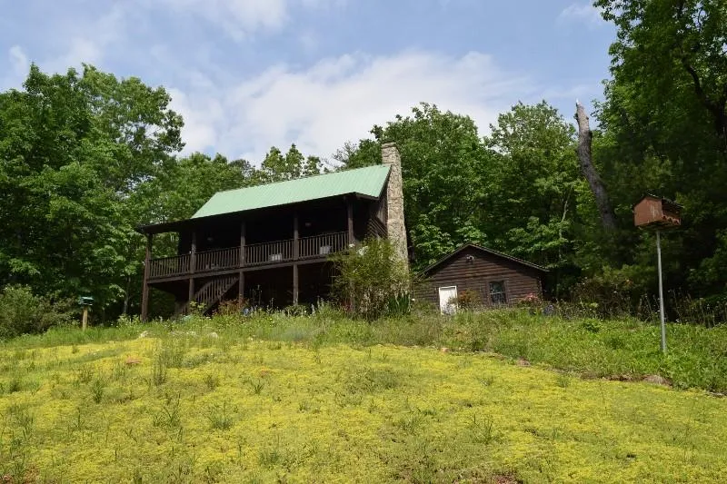 Over 7 acres of nature surrounds this log home on the ridge. Enjoy the view from the front porch while overlooking the perineal gardened landscaped areas near the home. Take an evening walk through the woods leading to the stream.