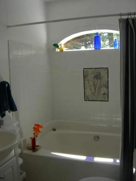 Off the well lighted family room is also a wonderful 10 X 12 screened porch with ceiling fan, and view of the river. Great for having snacks and meals and listening to the river or bird watching. As a bonus, there is a hatch in the living room which leads to a 200 sq ft finished bonus room under the house, which has passive solar heat. Great room for kids, guests, or hobbies. This room also has an entrance below.