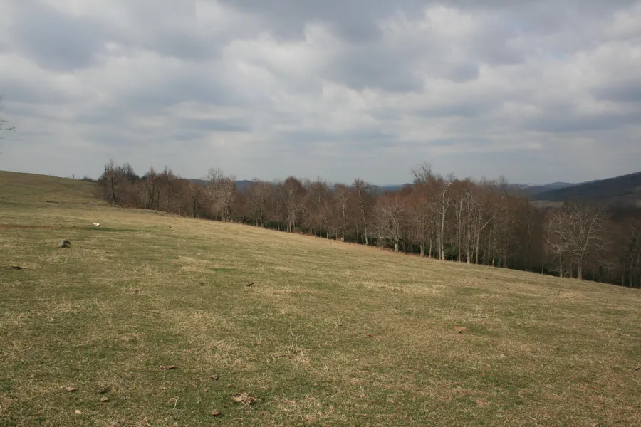Land is rolling to level with pond - this is on the Patrick County side of the property. Part of the property has fencing for livestock. From the top of the ridge the property has a 360 degree breath-taking views. This would be a fantastic location for a home. Also, there are several other excellent building sites.