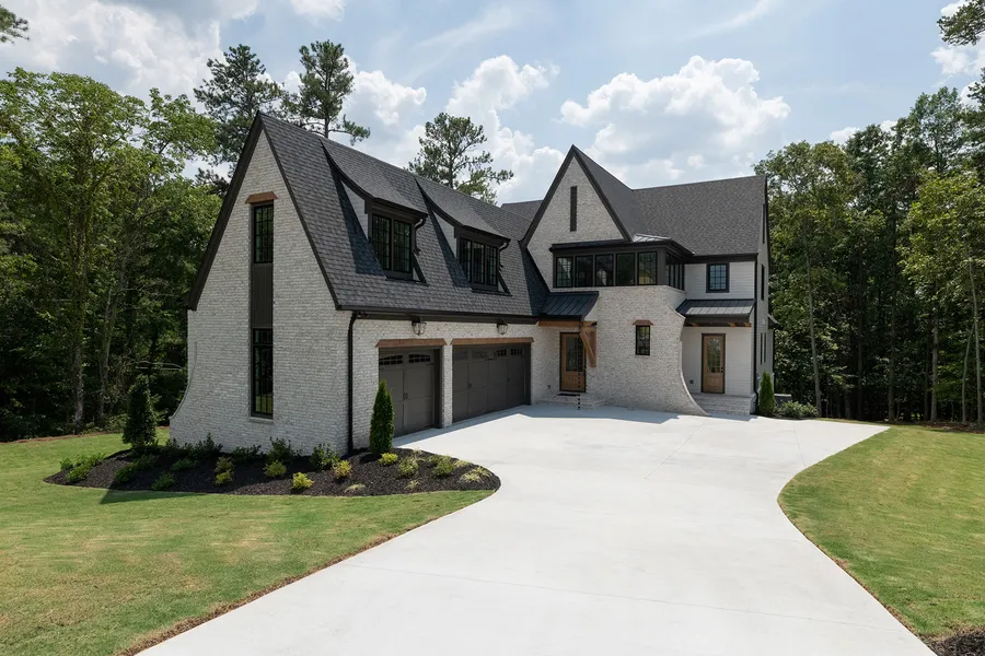 This five-bedroom, three- and one-half-bathroom home beautifully blends European and contemporary/modern influences and boasts a full, unfinished basement. Designed by Frazier Home Design and recently built by Elevation Building Company, it features a soaring entry, six-inch prefinished white oak floors and beamed 10’ ceilings. The unrestricted floor plan blends a cozy living area, formal dining room and a stunning chef’s kitchen. Top-of-the-line appliances include a 36” JennAir gas range, Asko dishwasher and Sharp 24” microwave drawer. Quartz countertops, a generous island and a walk-in pantry turn the kitchen into every epicurean’s dream. Delight in custom cabinets with soft-close doors/drawers and under-cabinet lighting. Keep wine bottles on display against a unique wine feature wall. A pocket sliding door opens the indoor living space up to an outdoor deck (complete with a fireplace featuring a six-foot cedar mantel and a raised stone hearth) overlooking a wooded backyard. The main-level owner’s suite fulfills every peaceful fantasy, from the vaulted ceiling and large walk-in closet to the spa-inspired en suite complete with a freestanding tub, dual vanities and a walk-in shower. Upstairs, four additional bedrooms and a laundry room await. The expansive 4,431 /- square footage includes a full, unfinished basement and a three-car garage (complete with a 220v outlet for EVs). Energy-efficient features include Lincoln Aluminum Clad windows and foam insulation, the smart home alarm system helps to protect what matters most. A built-in pest control system ensures hassle-free pest management. The gated community provides an array of amenities, including swim/tennis/golf, a spa and a restaurant, and the home comes with the initiation fee for an athletic membership. Enjoy a cul-de-sac location on just over an acre, complemented by HOA perks like park access, pickleball, a playground and a sauna.