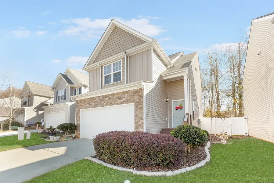 This updated 3/2.5 home is move-in ready and one of the newer homes in the neighborhood for sale. As you step into the home, you're welcomed by tall ceilings in the foyer that set the tone for the spacious and inviting layout. Hardwood floors flow seamlessly throughout, leading to an open floor plan that combines the kitchen, living, and dining areas, perfect for entertaining or relaxing by the stunning stone fireplace. The kitchen is equipped with sleek stainless steel appliances, adding a modern touch to the space. The oversized master suite is a true retreat, complete with trey ceilings that elevate the charm of the room. The community offers a junior Olympic-sized pool and playground! Enjoy the convenience of a low-maintenance yard, perfect for those seeking more time to relax and less time spent on upkeep. With the added perk of HOA services, landscaping is taken care of twice a week, ensuring your outdoor spaces remain pristine without the hassle. This feature allows you to enjoy a well-manicured yard year-round without lifting a finger! Conveniently situated for an easy commute, this home is also just minutes from shopping, popular restaurants, and a nearby hospital, ensuring all your needs are within reach.