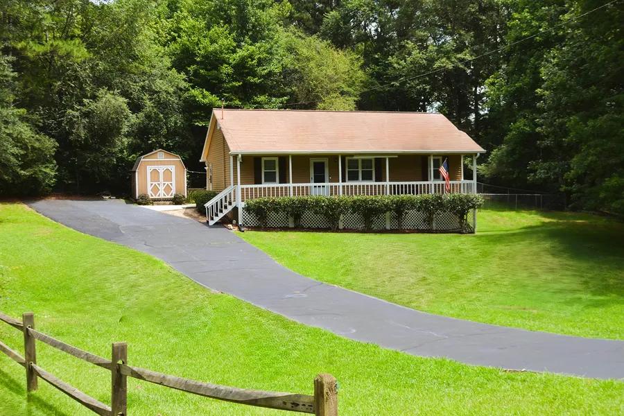 Back on the market! This is a wonderful opportunity for a three bedroom/three bath ranch home on a private, almost half acre lot, with an expansive front lawn and plenty of room to garden, spend evenings around the backyard firepit, or enjoy a cup of coffee or an evening al fresco meal in the comfort of the attached screened porch. ADA compliant features include a side entry with a wheelchair accessible ramp and double doors for easy access, and a home addition in the recent remodel created a new primary suite equipped with a wide doorways and hall, dual closets, a large, open shower that is wheelchair friendly, a handicap accessible double vanity, lever handles, grab bars, and a zoned, one-ton electric HVAC system. The secondary bedroom also has an attached bath, and the third bedroom is serviced by a full bath as well. The home features a whole-house generator, to ensure there is never a loss of power! Additional updates include gutters with covers for easy maintenance, new septic tank system & lines, concrete sidewalk with wheelchair accessible ramp, covered screened porch, and a driveway addition in 2021 provided additional parking pad as well as plenty of room for RV parking; there may also be an option to later construct a covered carport or add a garage, if desired. Adorable outbuilding is the perfect place to store landscape equipment & tools or use as a handy workshop. No HOA, and there are no rental restrictions. Home is located off a quiet street with just a few homes, and a cul-de-sac at each end. This peaceful, country lifestyle is convenient to nearby shopping, parks and the Silver Comet Trail, downtown Dallas, downtown Hiram, Hwy 278, Paulding Hospital, and Paulding Airport.
