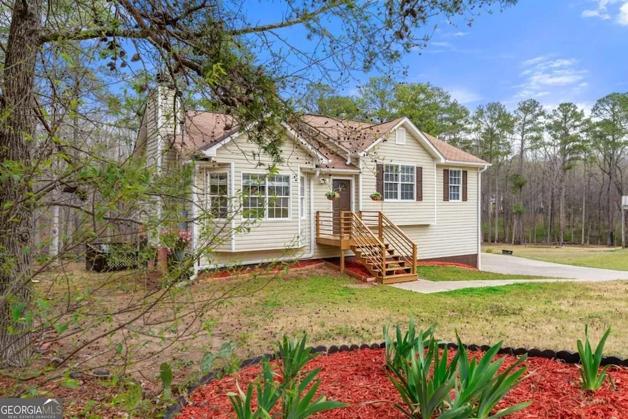 Back on market due failed financing. Discover the perfect blend of peaceful acreage (almost 3.5) and neighborhood living with this adorable home, nestled on a quiet cul-de-sac. Situated on an incredible flat lot with a serene creek running through the back, and a small pond, this property offers both privacy and tranquility. As you step inside, you are welcomed by a spacious living room featuring a cozy fireplace perfect for relaxing or entertaining. Upstairs, you'll find the well-appointed kitchen with a charming eat-in dining area, plus three generous bedrooms. The master suite offers a retreat with double vanities and a luxurious separate tub and shower. An additional secondary bathroom provides ample space for family or guests. The semi-finished basement is a standout feature, ready for your personal touch! With plumbing already in place for a bathroom, this space could easily be transformed into an in-law or teen suite, home gym, office, or whatever suits your needs. The large two-car garage offers plenty of room for vehicles, plus additional space for storage or a workshop. Step outside to enjoy the large deck, perfect for entertaining, and take a dip in the above-ground pool ideal for hosting memorable summer parties or simply relaxing on warm afternoons. There is a small creek and a small pond towards the back. An oasis. This home offers the perfect combination of privacy, space, and convenience. Don't miss your chance to make it yours!