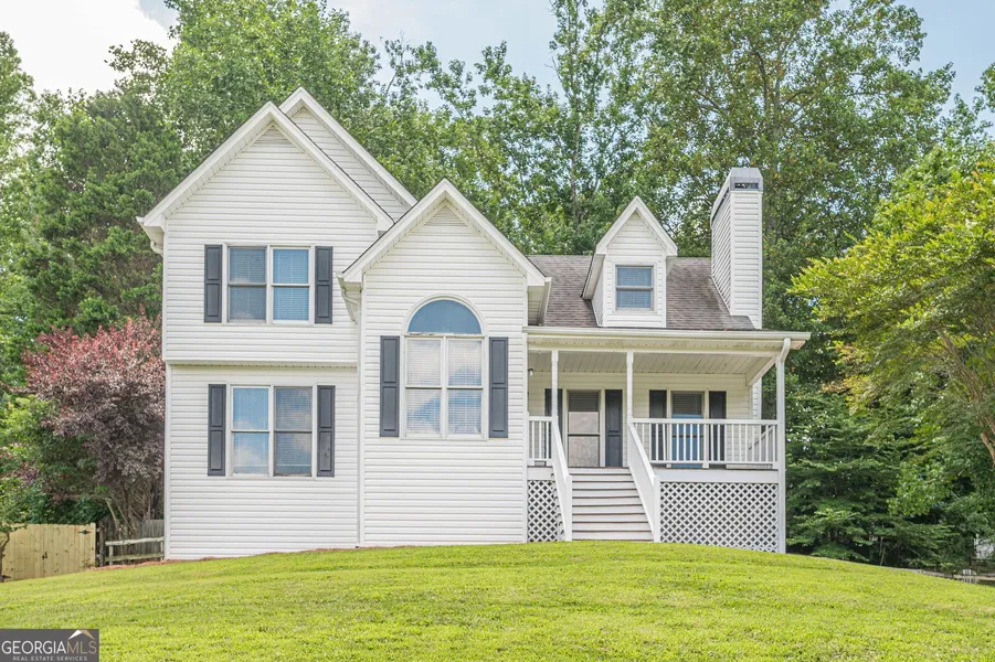 Gorgeous and unique home located in the HOA free community of Kensley Park in Dallas Georgia. As soon as you step up to this home you're greeted by covered rocking chair front porch. Inside dark luxury vinyl plank flooring throughout and neutralL walls means its awaiting your unique touch. Fireside family room is there as you enter with stone fireplace. Dining area is overlooked by the white cabinet kitchen with laminate floorings, tile backsplash and stainless steel appliances. Primary suite on the main is well sized with private bath, walk in closet and private water closet. Upstairs includes three full bedrooms that share a full bath. Downstairs includes finished basement with bonus room and bathroom. Two car drive under garage means storage is plentiful. Private backyard, located near shopping, restaurants, schools and more.