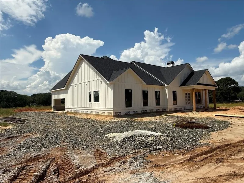 LAKE FRONT PROPERTY sitting beautifully on Lake Jane. NO HOA.... new home under construction is the Rosehill floorplan, 4 BR/3.5 BA beautiful Farmhouse Ranch style home on 5.42-acre lot. This home is built on a slab with beautiful features including a stone water table on all four sides with stone accents, black window package, hardi plank siding, rear side entry with 18 ft garage door with opener, 30 Year architectural shingles, 5" gutters. Kitchen with large walk-in pantry, beautiful upgraded wood inset cabinets, island, farmhouse sink, quartz countertops in the kitchen and master bath, granite countertops in the baths, beautiful Cafe brand stainless-steel appliances including a range, dishwasher, microwave AND refrigerator. Dining Room with 10 ft ceilings, Spacious Living Room with fireplace and open concept plan,Office, split bedroom plan,finished bedroom with full bath upstairs, ceramic tile flooring in baths, hardwood flooring throughout. Master bathroom has his/her split double vanity, ceramic tile shower, huge walk-in closet. Upgraded closet systems throughout. This home will feature a 12 ft dual bifold door (3 pane sliders each 4 ft in size that will give you an open 12 ft door area) that opens to the covered rear back porch area with flag stoned flooring with a breathtaking view of the lake. Closing attorney is Bagby Law in Dallas, GA. When using the preferred lender, Marybeth Zimmerman with SWBC Mortgage the buyer will receive a $3,000 credit towards closing costs from lender*****Builder may make changes/substitutions****. *****plan shown is rendering and some changes made be made by the builder****.