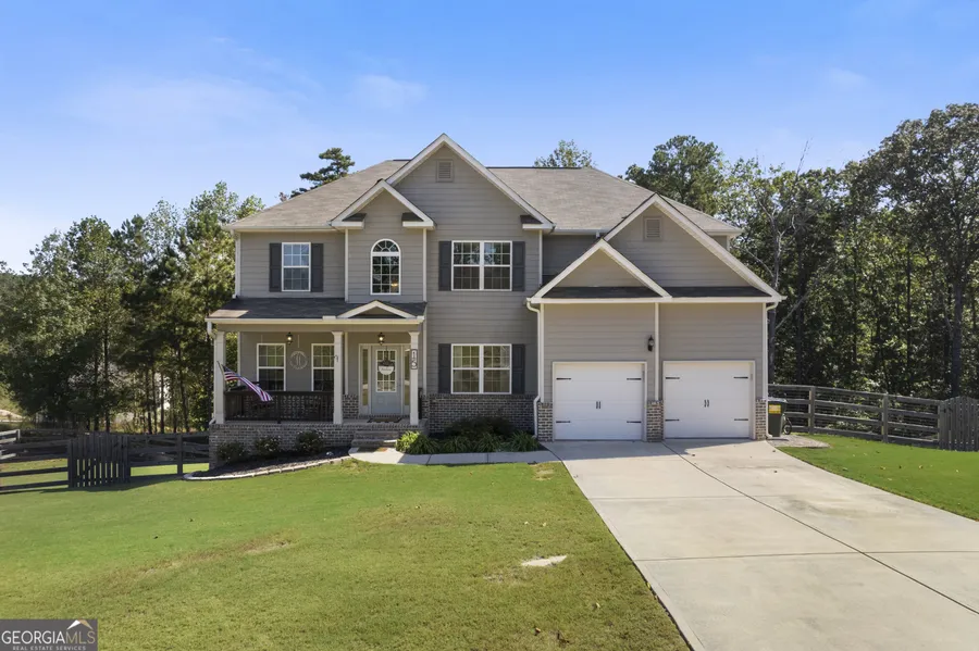 MOTIVATED SELLER! Bring ALL offers! Welcome Home! From your covered front porch, step inside this beautiful, spacious 5 bedroom, 3 bathroom home on full unfinished basement! Upon entering the home's 2 story foyer, you will find the formal dining room featuring coffered ceilings across from the home's office/den complete with custom barn doors! A large open family room with fireplace leads you into the breakfast area and chef's kitchen featuring stainless steel appliances, granite countertops, walk-in pantry, double ovens, large island perfect for entertaining, and more! Need a drink after a long, hard day? There's a bar for that, too! The main floor also features a guest bedroom and full bathroom. Upstairs you'll find 3 more secondary bedrooms, along with another full bathroom. Also upstairs you will find the oversized primary suite which features tray ceilings, his and her walk-in close...