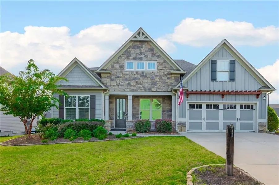 Updated like new and ready to go!! All New Interior Paint, New Carpet and New Appliances! Gorgeous stacked stoned accents cover the front of this treasure! Stunning craftsman-style home blends timeless character with modern upgrades - this home is move-in ready and designed for both comfort and entertaining. Key Features Include • 4 Bedrooms/Office | 3 Bathrooms | Soaring Ceilings and Incredibly Spacious Loft/Bonus Room! • Elegant formal dining room with two story coffered ceilings • Spacious open-concept living room with gas log fireplace • Gourmet kitchen with stainless steel appliances & oversized island • Private owner’s suite with spa-like bath and walk-in closet • Upstairs Spacious loft—perfect for a second living area, playroom, or media space • Dedicated office for remote work or flex space (easy to add closet to make official 4th BR). Entertainment & Outdoor Living at its Finest • Game Day patio with FP & gas logs, ideal for gatherings year-round • Professionally landscaped & fenced yard with excellent curb appeal • 2-car garage with carriage-style doors. Great Location in a highly sought-after neighborhood with cul-de-sac. The neighborhood amenities are world class - 13 acre water park, ten tennis courts, dog park, and walking/biking trails. The best of the best offering space, style, and functionality—welcome home for the holidays!!