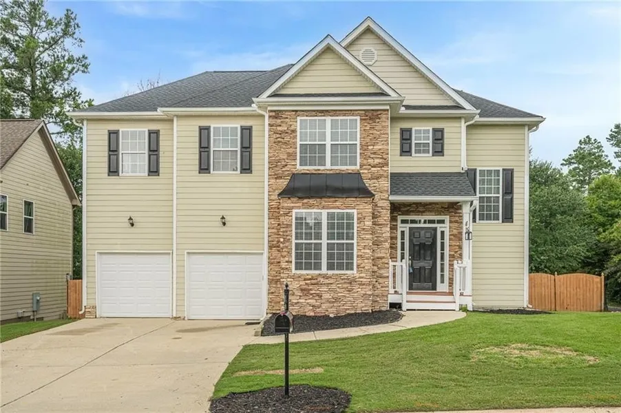 Lovely three story home in Kismet At Vista Lake located in Dallas Georgia! This 3 bed, 2.5 bath has everything you are looking for! Located in the HOA community with swim/tennis and well landscaped homes. As soon as you step inside you are greeted by a formal foyer with views into the private dining and two story family room. Fireplace at the center of the two story room has luxury vinyl flooring and wall of windows that stream in natural light. Kitchen includes stained cabinets, countertops, eat in breakfast area and pantry. Screened in porch and deck off the back of the home overlook nothing but trees. Primary suite has tray ceilings, large bathroom with double vanities and walk in shower along with massive closet. Two more well sized bedrooms make up the main and share a full bath. Downstairs is fully unfinished basement with walk out access that's awaiting your unique touch. Two car garage has high ceilings for bonus storage space. This is a can't miss home! HOA includes a pool, tennis courts, two playgrounds, a clubhouse, walking trails, and more!