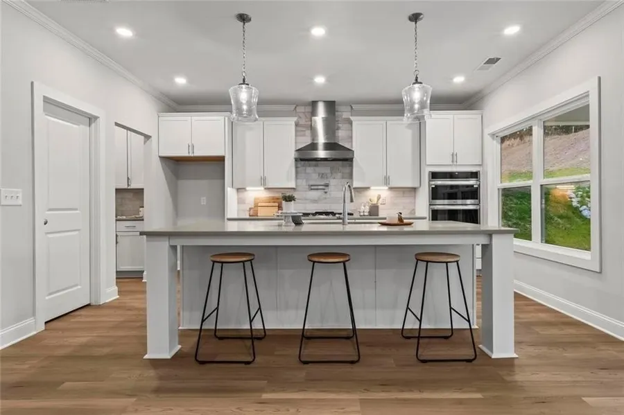 New construction and move-in ready! This two-story home offers a highly desirable layout with luxury vinyl flooring throughout the main level and up the stairs. Off the entry, the front room is versatile and ideal for a home office or playroom. The kitchen is thoughtfully designed with under-cabinet lighting, stainless steel appliances, a walk-in pantry, and a butler's pantry perfect for a coffee bar, along with an oversized island that overlooks the living room with a fireplace. Just off the kitchen, a built-in mudroom area creates a functional and organized transition from the garage. Formal dining with coffered ceilings sits off the living area, creating an inviting space for entertaining and gatherings, while the covered patio extends from the living and kitchen-ideal for additional living space or outdoor entertaining. Upstairs, the owner's suite features a spa bath with soaking tub, frameless shower, and walk-in closet. The upper level includes three secondary bedrooms, one with an en-suite bathroom, plus a third full bath upstairs with double sinks. This rare and hard-to-find floor plan includes direct laundry access from both the primary bathroom and the hallway. An extended driveway with a third-car parking pad provides valuable additional parking. Located in NatureWalk at Seven Hills in Dallas, GA, this master-planned community offers wooded nature trails, a resort-style waterpark, Olympic-sized pool, pickleball courts, clubhouse, dog park, playground, sports fields, and year-round events led by a full-time activities director. Be sure to ask about the Seller's $9,500 contribution toward Buyer-paid closing costs! You asked and the Builder listened- CHECK OUT THE NEW SCREENED-IN PATIO!